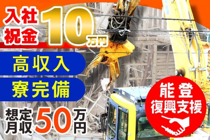 • バックホウの運転、ダンプの運搬業務、解体・土木工事の施工 (職種により未経験可)